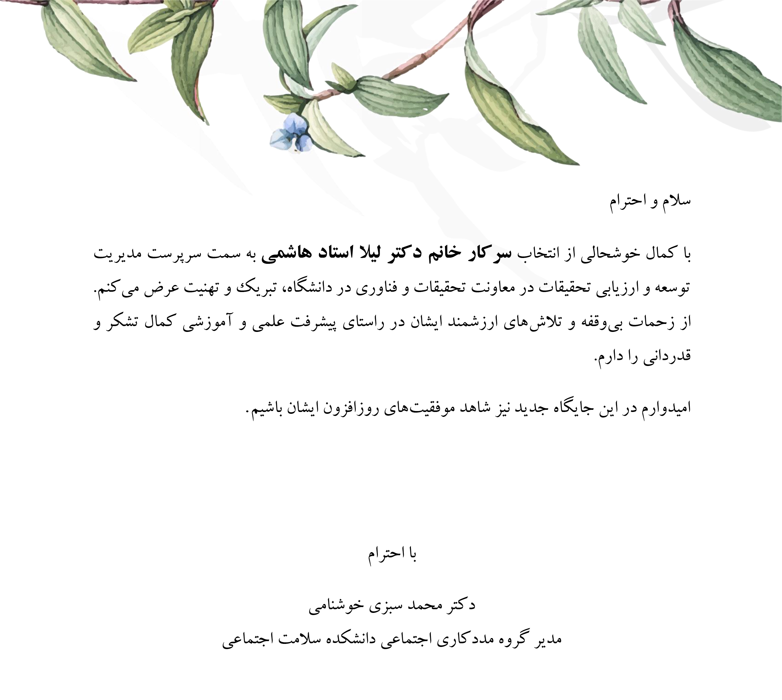 سرپرست مدیریت توسعه و ارزیابی تحقیقات در معاونت تحقیقات و فناوری