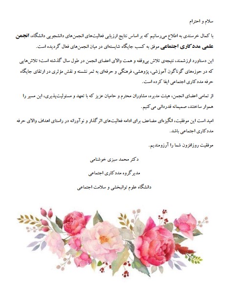 درخشش انجمن علمی مددکاری اجتماعی در ارزیابی سالانه دانشگاه
